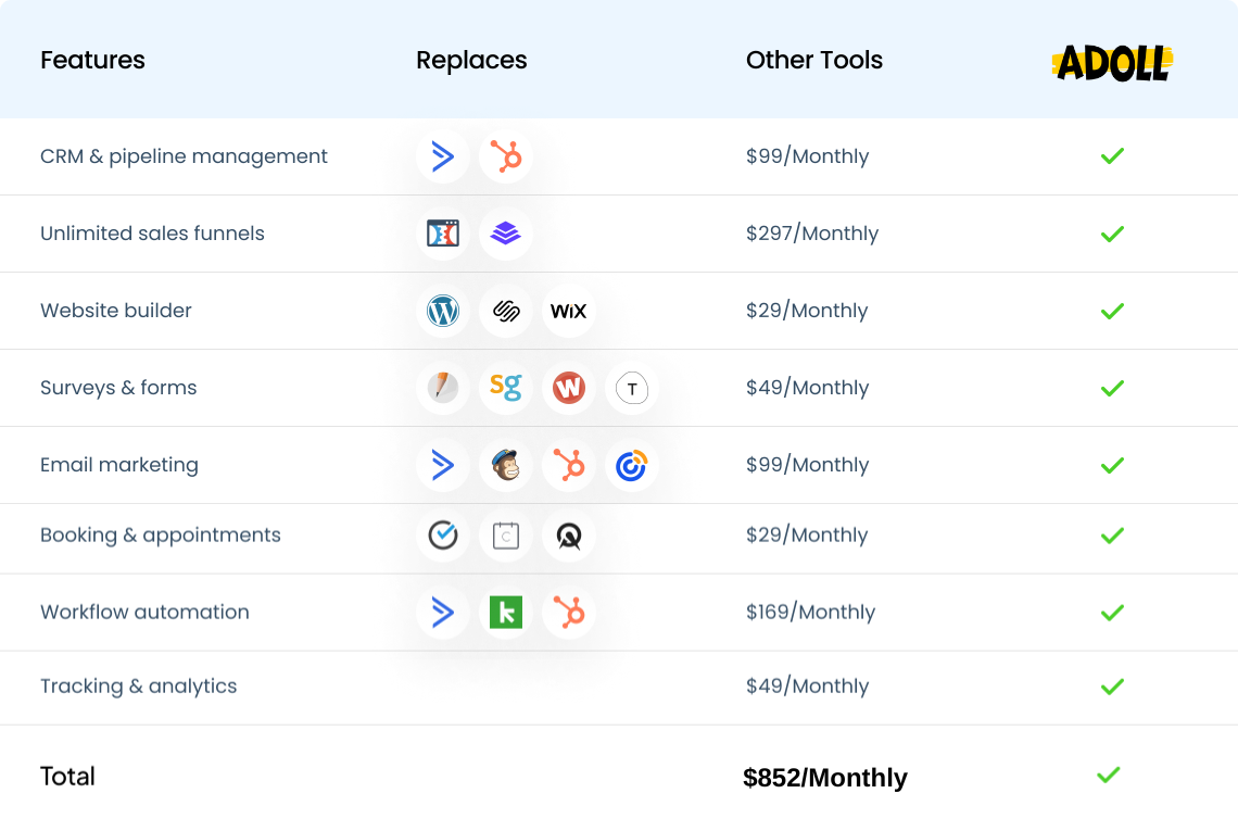 🌐 Cost-Efficient Mastery: Save big on expenses by consolidating your essential tools in one place. Adoll ensures you don't have to buy ten different software solutions – experience maximum efficiency without breaking the bank!